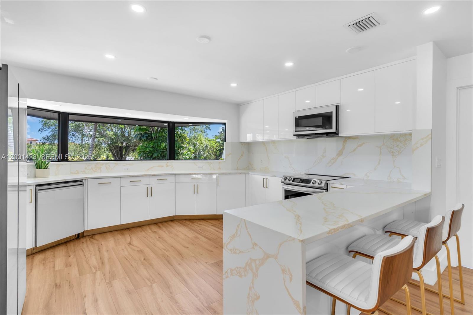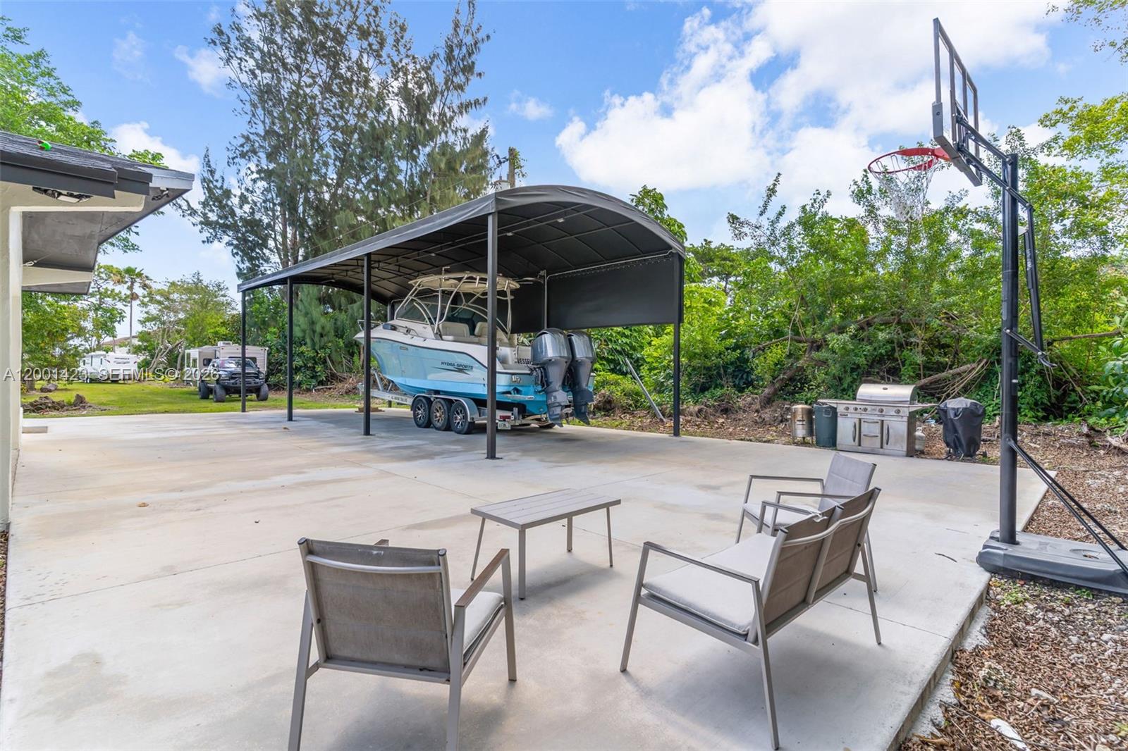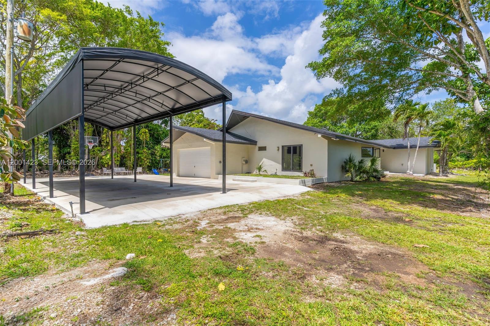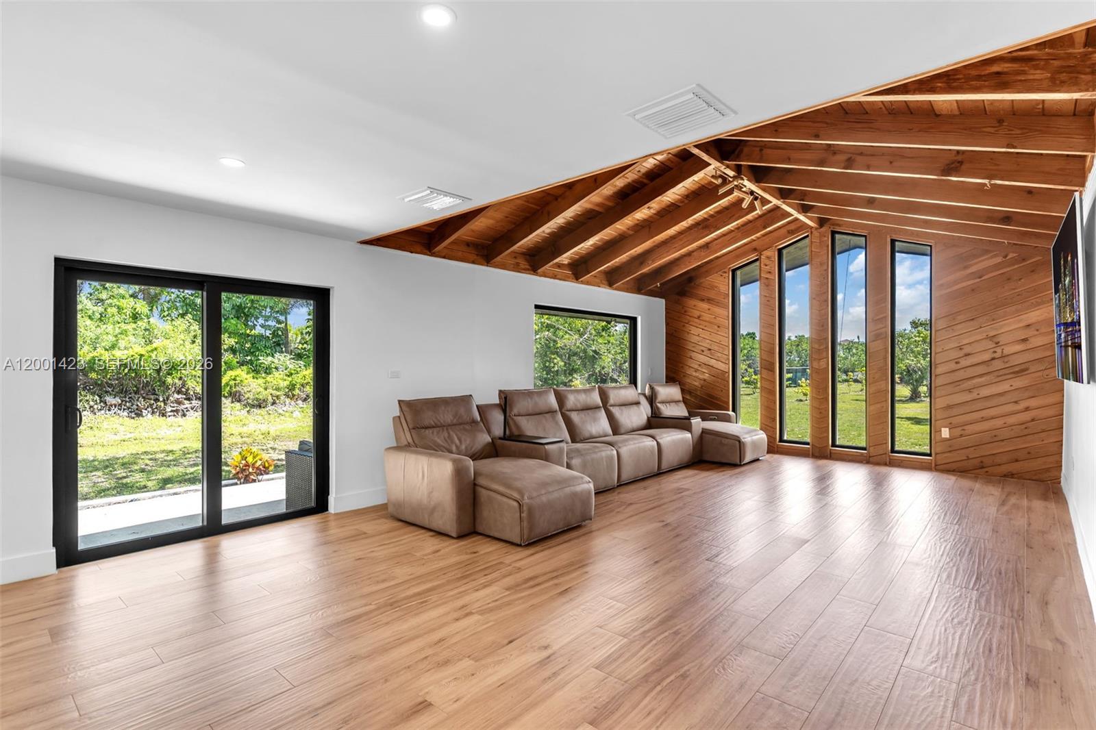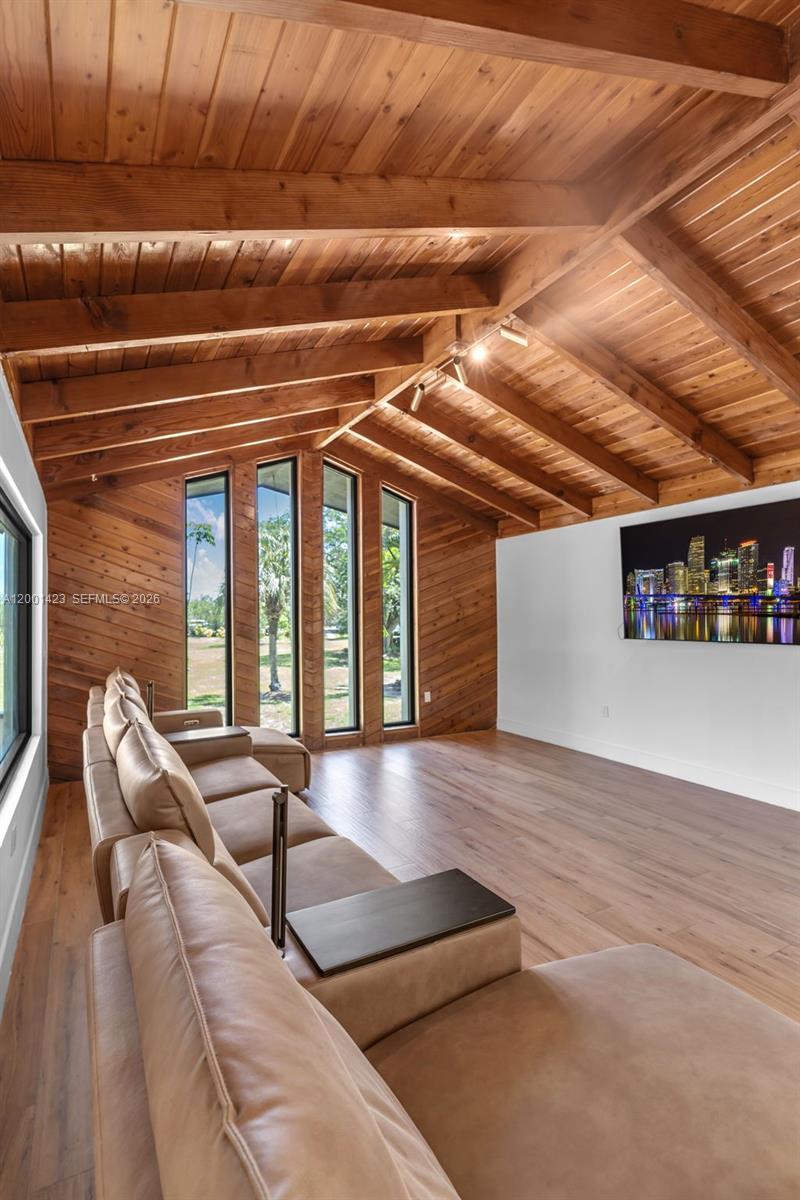 This beautifully remodeled 4 bedroom, 2 bathroom residence offers a rare blend of architectural character, modern upgrades, and expansive outdoor living. From the moment you arrive, the property sets a distingueshed tone with its clean, modern lines. Inside, a bright open layout is enhanced by elegant Italian tile flooring and incredible natural light. The main living area features soaring vaulted wood ceilings and dramatic floor to ceiling windows, creating a warm yet sophisticated space ideal for both everyday living and entertaining. At the heart of the home, a stunning glass enclosed interior garden courtyard creates a true architectural statement, bringing natural elements indoors and serving as a tranquil focal point that seamlessly connects multiple living spaces. The chef’s kitchen showcases sleek cabinetry, stainless steel appliances, and quartz countertops with a waterfall edge island. Completely renovated in 2024, no expense spared in this meticulous renovation, showcasing top of the line materials, the home includes new plumbing, electrical, roof, A/C, & so much more, along with commercial grade impact windows and doors. The property offers over 50 fruit trees, expansive grounds with room to create your own ideal outdoor setting, like a pool or outdoor kitchen, the possibilities are unless. A covered boat/RV shelter with electricity. Ideally located just minutes from the Florida Turnpike, shopping and dining options, less than 5 miles from Black Point Marina, offering direct access to Biscayne Bay for boating and waterfront dining.