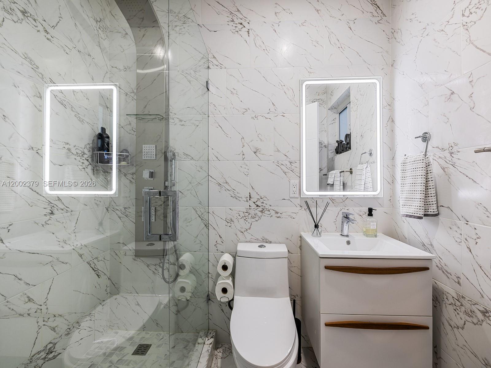 Fully renovated single-family home on a 20,468 SF lot in Glenvar Heights, ideally located just one block from the Palmetto Expressway with immediate access, and minutes from US-1, Dadeland Mall, South Miami, and Baptist Hospital. Situated on a private cul-de-sac with only four residences, this 5-bedroom, 3-bathroom home was redesigned in 2021 and blends modern design with indoor-outdoor living. The open layout is filled with natural light and enhanced by clean lines, custom millwork, and high-end finishes. The kitchen features sleek cabinetry, a statement island, and premium LG appliances. The kitchen and primary closet were custom-designed by Chris Dalto. Living areas flow to a resort-style backyard with a 2022 heated saltwater pool and spa/jacuzzi, covered terrace, and custom tiki hut with outdoor kitchen, surrounded by lush landscaping and a full-home water filtration system by Advanced Water Products and a new water pump. Framed by a white privacy fence and mature palm trees, including a striking front palm, the property offers privacy and curb appeal. Additional highlights include a two-car garage, circular driveway, side garage access, and dual gated entrances. A rare opportunity to own a fully renovated home with resort-style outdoor living, privacy, and a prime cul-de-sac setting in one of Miami’s most desirable areas.