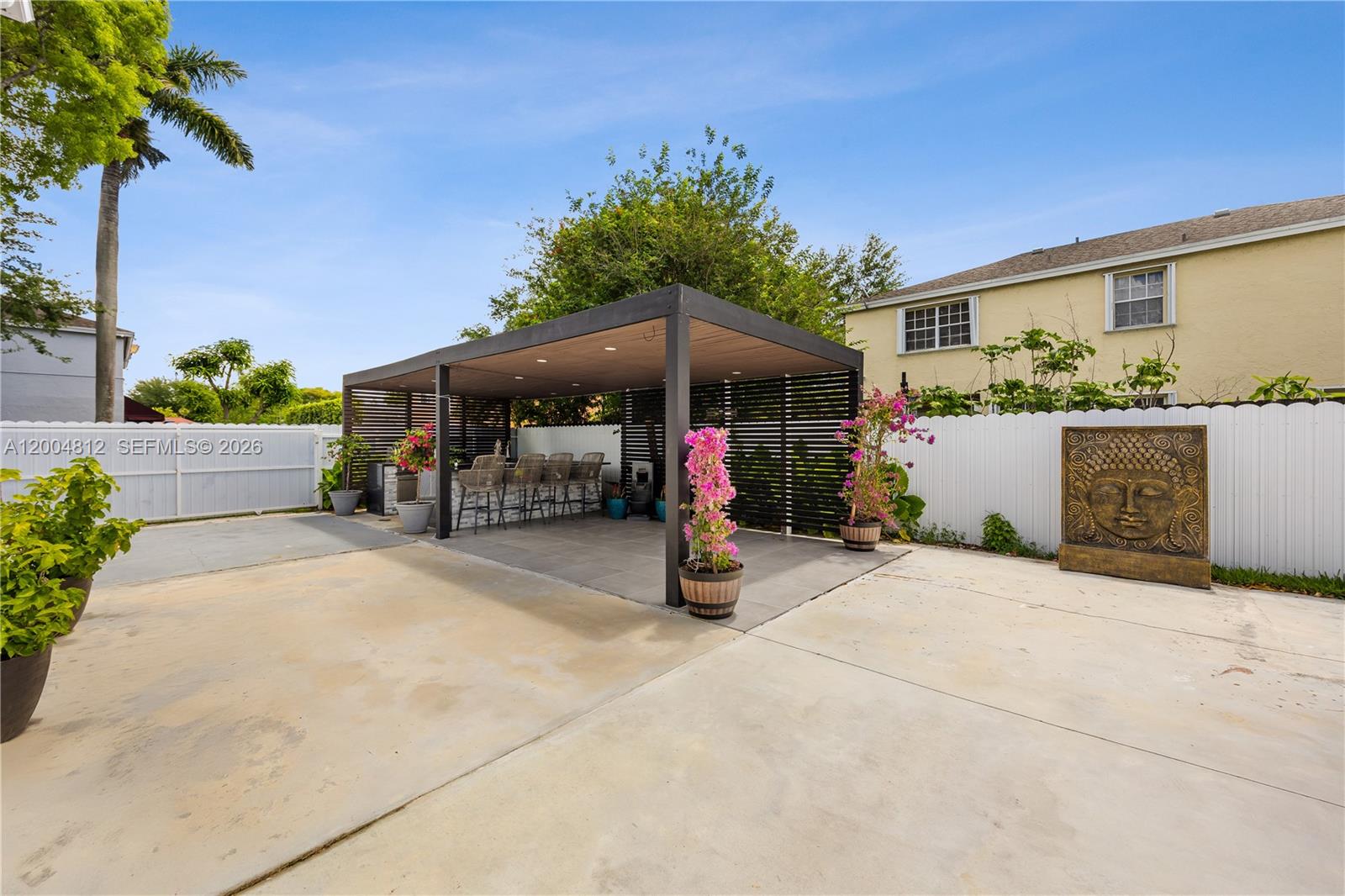 Exceptional single family home in the desirable Panache community, offering a perfect blend of modern upgrades and functional living. This meticulously maintained property features a 2020 roof, hurricane impact windows and doors, Tesla charger and leased solar panels for energy efficiency. Inside, enjoy elegant marble flooring throughout the first floor and fully renovated kitchen and bathrooms (2025) with sleek quartz countertops. Designed for both comfort and versatility, the home includes in-law quarters -ideal for extended family or extra income. Step outside to a fully paved concrete backyard built for entertaining, complete with a custom outdoor kitchen featuring a gas grill, beer dispenser, refrigerator, and wine cooler, plus a stylish pergola and perimeter roof lighting system. The spacious lot offers rare flexibility to accommodate a RV, trailer or up to a 26' boat along with a 2023 fence and convenient side entrance. Amenities pickle ball and a pool.