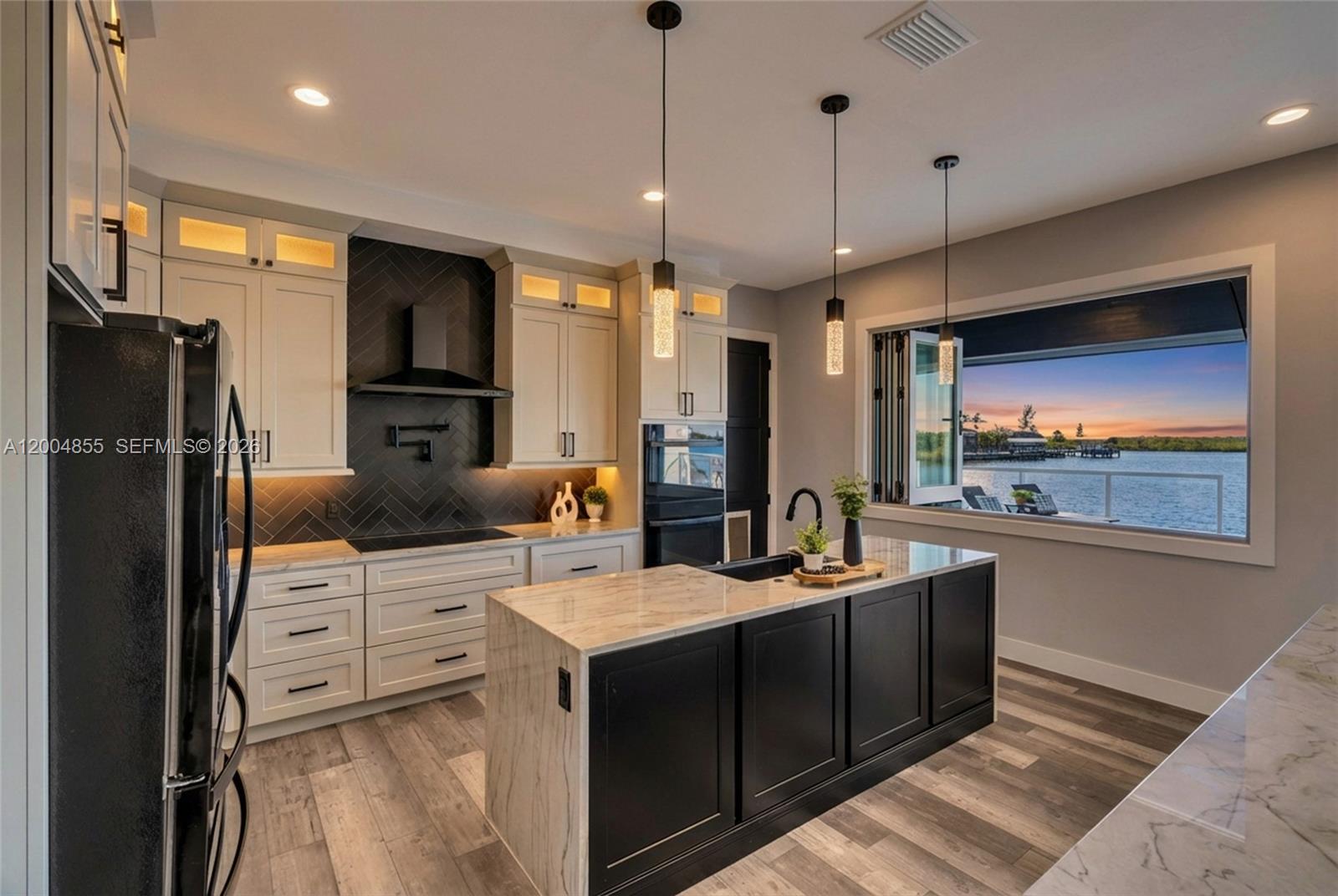 Experience modern coastal luxury in this custom-built 2025 waterfront home with direct sailboat access to the Gulf. Offering 3,784 square feet of beautifully crafted living space, this residence blends elegance with function. The home features 3 oversized bedrooms, a private office, a theater/flex room with bar, and 4.5 bathrooms. Each bedroom includes an en-suite bath, while one guest suite offers a private washer and dryer—ideal for extended stays or multigenerational living. The chef’s kitchen impresses with a pot filler, two waterfall-edge islands with seating for eight, and a walk-in butler’s pantry with a second dishwasher—perfect for entertaining. Motion-activated kick lighting and dimmable lighting enhance ambiance throughout. Built for durability and efficiency, the home includes hurricane-impact windows and doors, Icynene insulation, a whole-home reverse osmosis system, and a Fuji septic system. Outdoor living features retractable and hurricane screens, mini-split systems in the garage and lanai, and a built-in bug misting system. The lanai and pool area showcase premium FloCo rubber flooring—slip-resistant, cool-to-the-touch, and highly durable.A 1,200+ square foot air-conditioned garage with 17-foot ceilings and a door opening to the lanai completes this exceptional property.