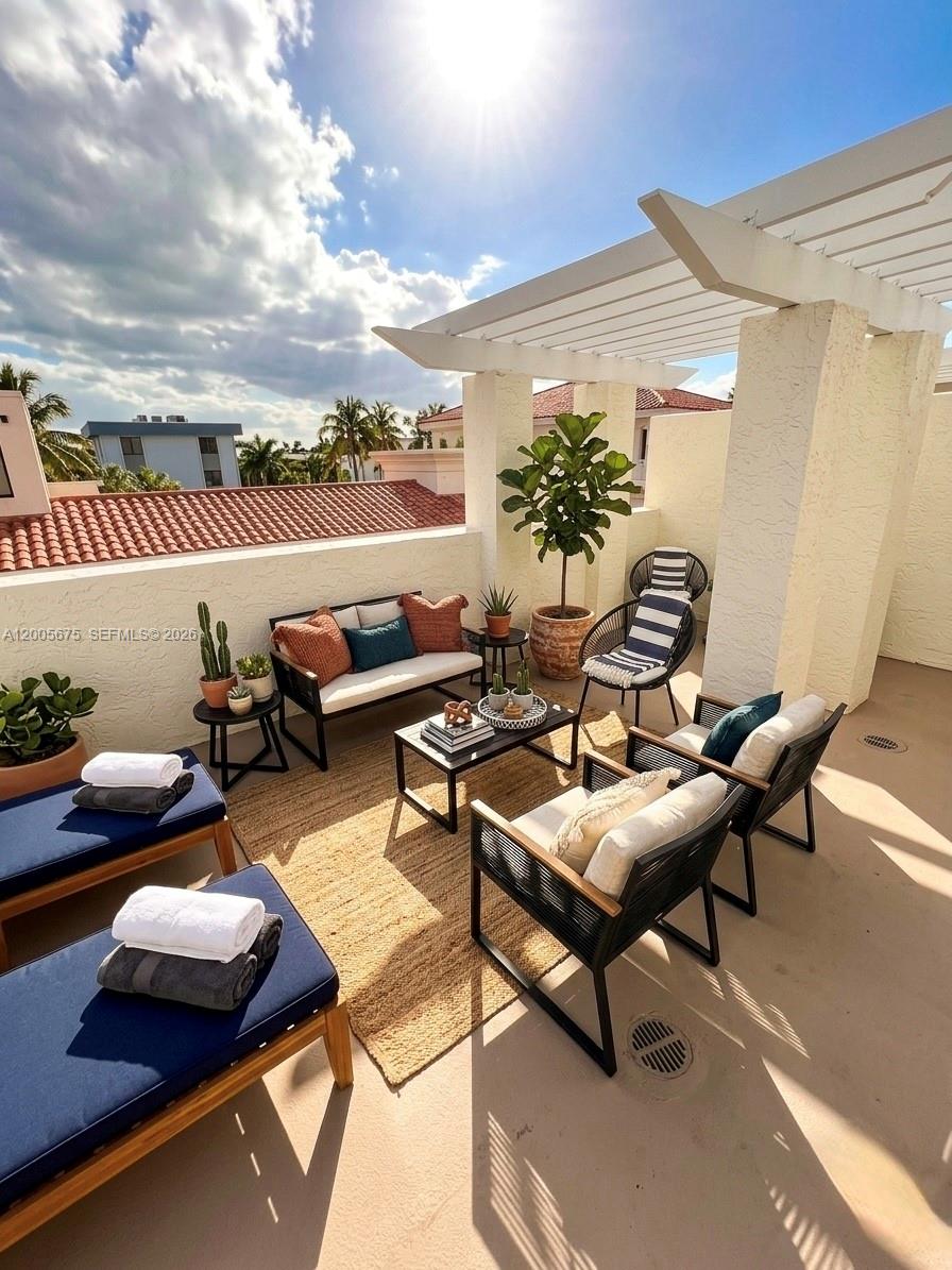Discover refined island living at The Villas at Bay Harbor, an intimate gated community of only 18 townhomes tucked into the heart of Bay Harbor Islands. Completely reimagined in 2022 and delivered fully furnished with designer selections, this 4-story townhome offers 2,675 SF of sophisticated living, converted-5 bedrooms, 4 bathrooms, and the rare convenience of a private interior elevator servicing every floor. The entry level welcomes you with a versatile den and full bath — effortlessly converted to a 5th bedroom — opening onto a tranquil outdoor patio. Ascend to the second floor, where a brand-new chef's kitchen anchored by marble countertops and a generous center island flows gracefully into the light-filled living and dining areas. The third level hosts three well-appointed bedrooms and two baths, while the entire fourth floor is reserved for an expansive primary suite featuring a walk-in closet and a private rooftop terrace — an ideal perch for sunrise coffee or evening cocktails. Residents enjoy access to a renovated rooftop pool and fitness center. Ideally positioned just moments from the beach, world-class shopping at Bal Harbour Shops, celebrated dining, houses of worship, and the A-rated Bay Harbor K-8 Center.