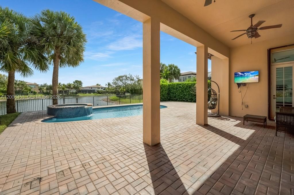 Completely updated lakefront home in The Glen at Heron Bay with over $350,000 in modern renovations. This single-story, 4-bed, 2.5 bath residence offers 2,554 square feet of thoughtfully redesigned living space on an 8,798 sq ft lot with private pool & scenic lake views. The desirable split-bedroom floor plan provides optimal privacy with bedrooms strategically separated throughout the home. Tile roof installed in 2019. Rare three-car garage exceptional for single-story homes with wide entry driveway. The comprehensive 2021 interior renovation includes Calacatta marble-inspired tile flooring throughout all main living areas, two fully remodeled bathrooms with contemporary finishes, upgraded pantry with enhanced storage, & a professionally converted office with new French doors offering privacy for remote work or quiet study. New primary closet doors complete the bedroom wing, while designer lighting updates include a linear chandelier over the dining area, statement sputnik fixture at the entry, & modern lighting throughout the home. Recent 2025 mechanical upgrades ensure move-in readiness: brand-new Samsung washer & dryer, new microwave, upgraded sprinkler system with commercial-grade pump, premium ceiling fans, serviced dishwasher with key components replaced, & garage door hardware updates. Community guard-gated security & resort-style amenities including two clubhouses, heated pools, jacuzzi, spa, saunas, tennis & many more. Top-rated Parkland schools.