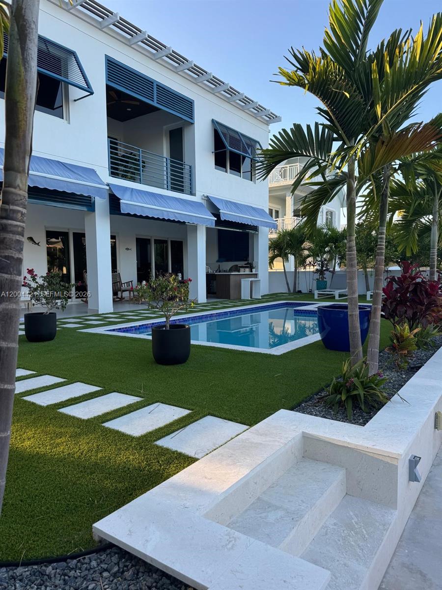 Brand-new 2023 HOME all concrete with 4,718 structure sq fts, 5 beds 4 baths and 1 office, HIGH ELEVATED, enter from ground level offering plenty of spaces, CONCRETE ROOF, pool, garage, 2025 DOCK waterfront with 60 ft of protected deep-water dockage and seawall, offering direct canal access to Tavernier Creek, 15,000 pound boat lift, summer kitchen, 2 Laundry rooms.