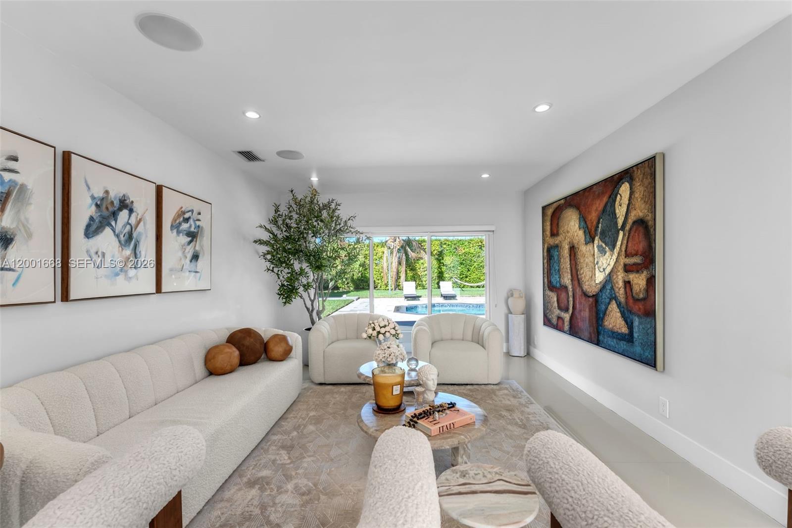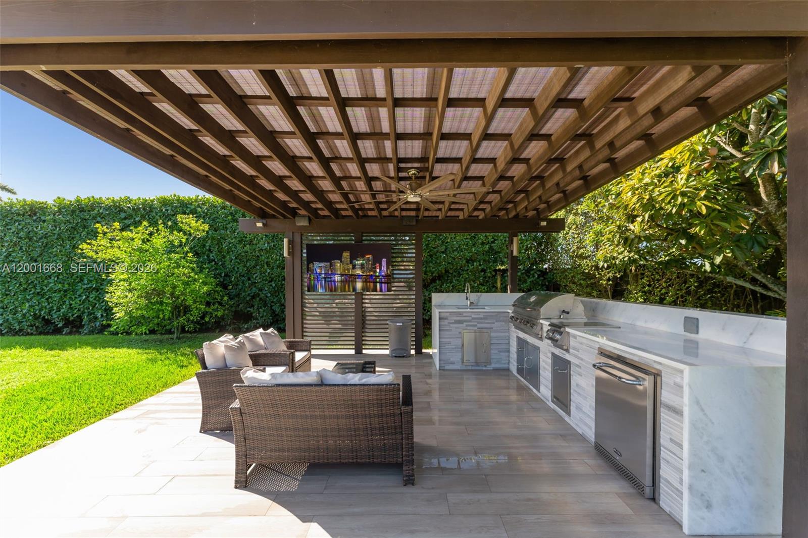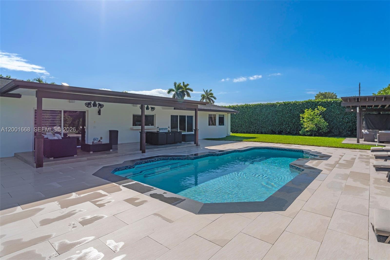 Fully renovated 5-bedroom, 3.5-bath estate, over 3,000 total area ,on an oversized 22,500 SF lot in a prime Miami location! This spacious home offers significantly more living area than reflected on the tax roll(county error) and features high-end upgrades throughout. Enjoy a modern interior with impact windows, elegant ceramic floors, and a functional open layout ideal for both living and entertaining. The home has been meticulously maintained, including a roof replaced in 2019. Equipped for modern living, the property includes pre-wiring for a 13-camera security system and an integrated surround sound system throughout the home and backyard, creating the perfect blend of comfort, security, and entertainment. Step outside to your private, resort-style backyard oasis, surrounded by lush landscaping and mature trees that provide exceptional privacy. Enjoy a heated pool, expansive green space, and a custom-built pergola with a full outdoor kitchen and grill—ideal for hosting gatherings year-round. The property also features a well-fed sprinkler system and a variety of mature fruit trees, including mango, lychee, avocado, coconut, and more, enhancing the tropical ambiance. Plenty of space for expansion, RV/boat parking, or additional outdoor amenities. A rare opportunity to own a move-in-ready home with land, privacy, and luxury upgrades all in one