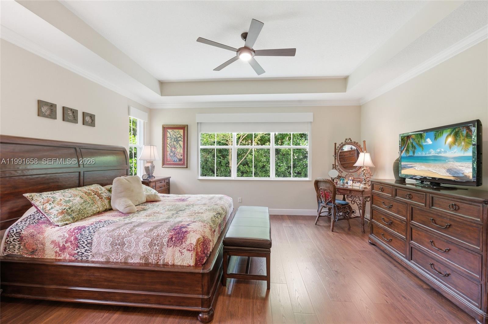 This gorgeous immaculate turnkey executive home shows like a model with upgrades galore, tucked in the exclusive gated boutique community of Ranchette Isle where the Homeowner's Association covers all irrigation, landscaping, pest control, fertilization, and tree trimming. Situated on a private street with no through traffic in Cooper City. As soon as you walk in you're welcomed by the grandeur of an open concept floor plan with soaring ceilings, large sliders and a lot of natural light. Modern kitchen with granite countertops and top-of-the-line appliances. Enjoy Three spacious bedrooms plus an office that can be converted to a 4th bedroom, with three full baths including a cabana. Full impact windows and doors. 24×24 diagonal porcelain tile flooring, Hunter Douglas blinds, plantation shutters, California Closets, security system with cameras, Ring doorbell, motion-activated spotlights and coach lights on timer. Lush landscaping, fenced yard, room for a pool. Short walk to Ted Ferone Park (tennis, basketball, playground, walking path) and Suellen H. Fardelmann Sports Complex (pickleball, basketball, baseball, softball, soccer). Near A+ schools, restaurants, and shopping.