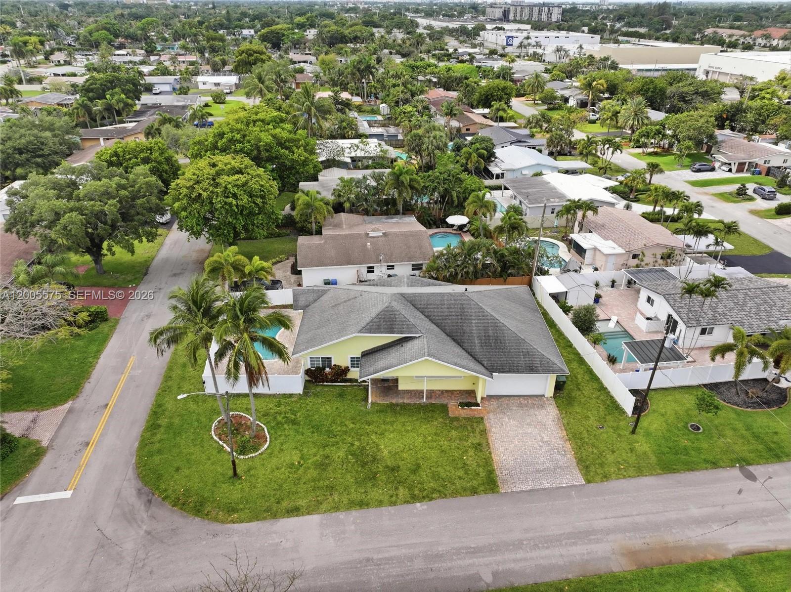 Tucked away in one of Fort Lauderdale’s most sought-after pockets, this 4-bedroom, 3.5-bath one-story home blends space, function, and lifestyle. Vaulted ceilings and an open layout create a bright, airy feel, while the backyard offers a private pool and cabana bath—perfect for South Florida living. The primary suite features a spacious bath and walk-in closet, and the flexible fourth bedroom (currently an office) can easily be converted. A rare 4-car garage offers endless potential, including in-law suite conversion. Situated on a corner lot with impact windows and doors throughout and PVC plumbing already updated. Perfectly located between Lauderdale-by-the-Sea and Las Olas, and just minutes from Fort Lauderdale Beach. Priced to sell!