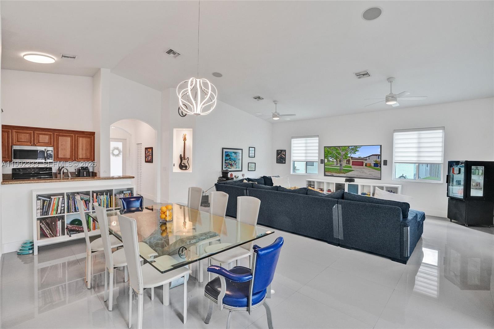 Welcome to this well-maintained single-story home (built 2010 by Pride Rock Builders) in the Enclave at Black Point Marina. A nice family friendly Cutler Bay neighborhood, off of Old Cutler Road. This bright 3BR/2BA floorplan features vaulted ceilings, a dramatic double-door foyer entry, split bedrooms, indoor laundry, 2-car garage, hurricane windows/doors, whole-house wired for sound and elegant 32"x32" porcelain tile throughout. Low HOA ($80/month) and thoughtful finishes make this a great opportunity for a nice new family to enjoy. Fantastic location within the community. Note the large green area on the right side of the home which is maintained by the community.