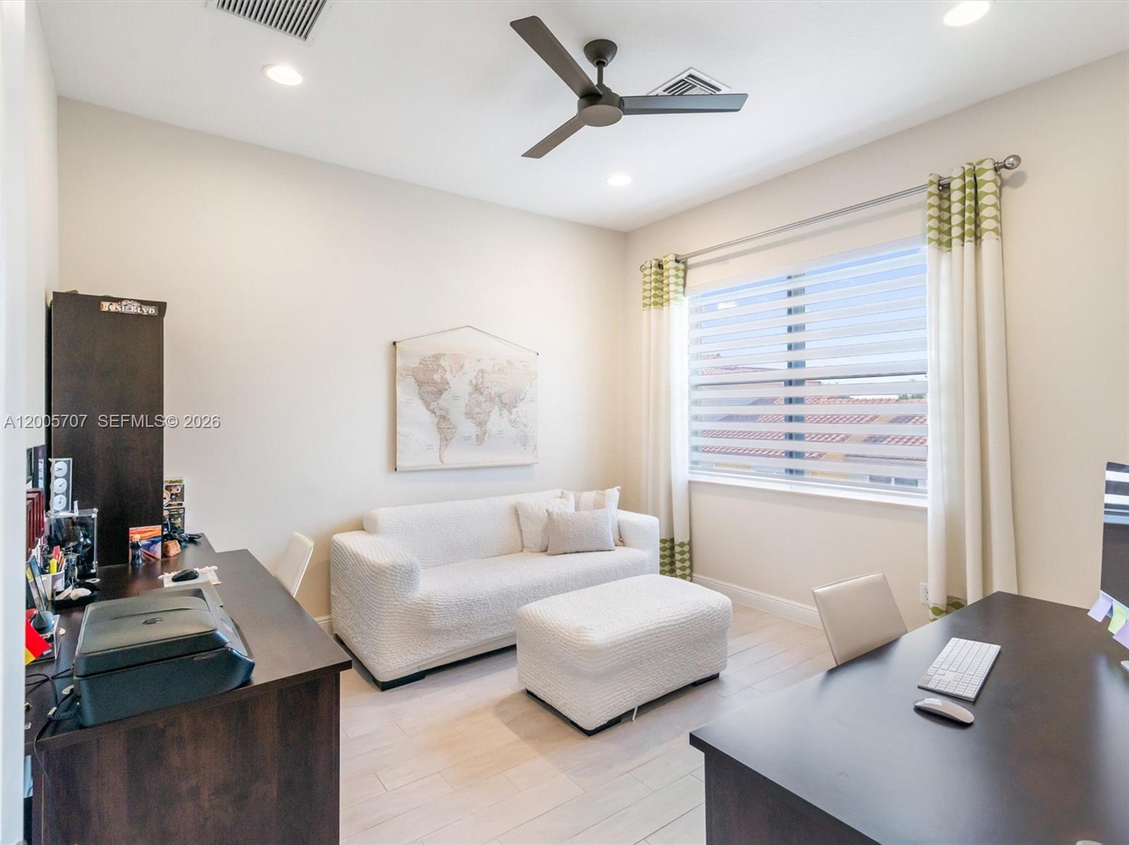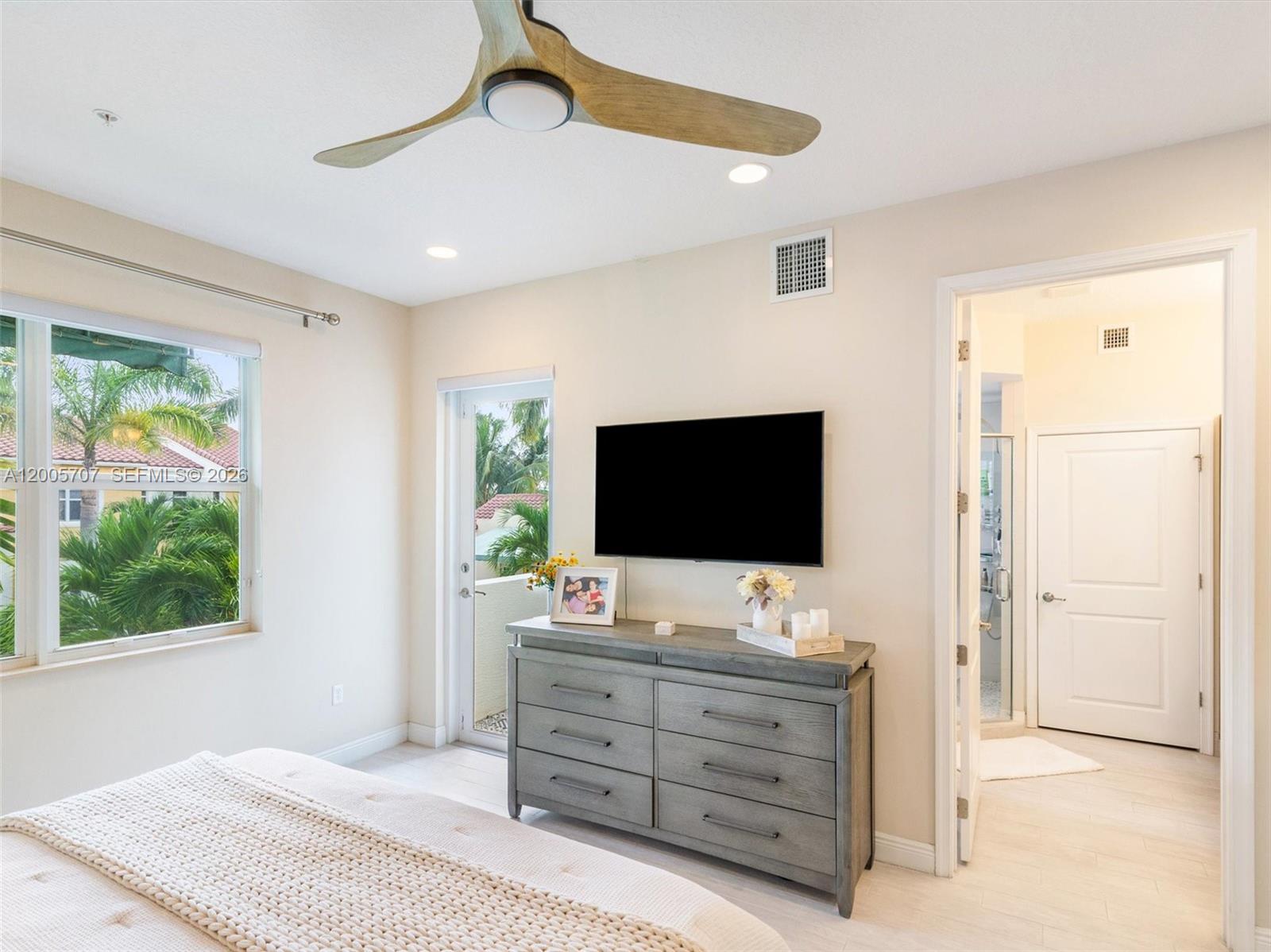 Modern and spacious 4-bedroom, 3.5-bath, 2-car garage tri-level Sky model in the highly desirable community of Centra Falls. This thoughtfully designed home features an OPEN FLOOR PLAN filled with natural light and PORCELAIN WOOD-LOOK TILE throughout the living areas and bedrooms. The UPGRADED KITCHEN offers FLAT-PANEL CABINETRY, QUARTZ COUNTERTOPS, & STAINLESS STEEL APPLIANCES, and flows seamlessly into the main living space, making it ideal for both everyday living and entertaining. The SPACIOUS PRIMARY SUITE includes its own PRIVATE BALCONY, while each level of the home features a dedicated storage closet for added functionality. The third floor provides excellent flexibility with a LARGE LOFT & KITCHENETTE, an additional bedroom and full bathroom, and access to an EXPANSIVE TERRACE with a retractable awning, perfect for hosting or relaxing. IMPACT WINDOWS AND DOORS throughout. Ideally located just STEPS FROM THE COMMUNITY POOL and within walking distance to shopping and dining options, including The Fresh Market, LA Fitness, Starbucks, CVS Pharmacy, this home offers a great combination of style, space, and convenience!