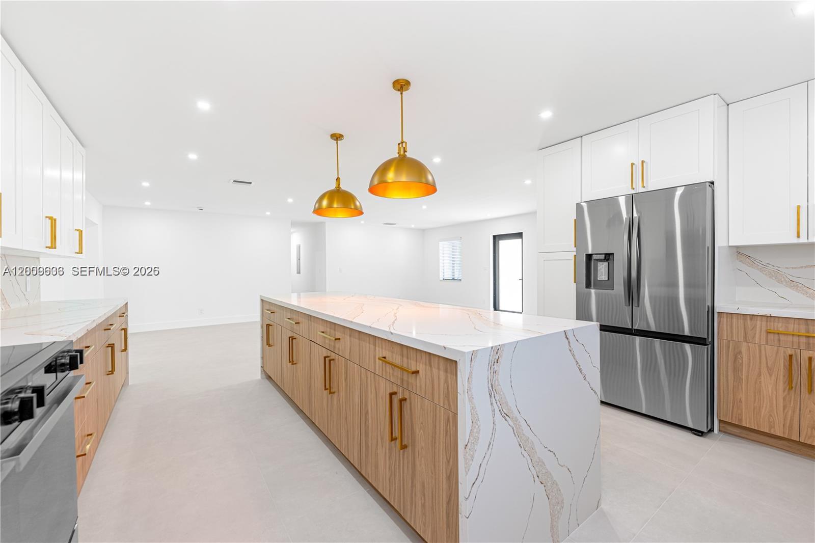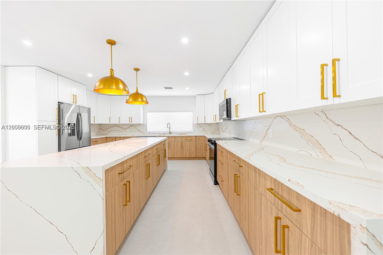 Beautifully renovated modern canal-front pool home in the highly desirable Southern Estates area! This move-in ready residence features a spacious open-concept layout filled with natural light, elegant finishes, and stylish upgrades throughout. The gourmet kitchen offers custom cabinetry, quartz countertops, stainless steel appliances, and an oversized island perfect for entertaining. The expansive primary suite includes a walk-in closet and a luxurious marble en-suite bath with dual vanities, spa tub, and glass-enclosed shower. Additional highlights include impact windows and doors for added security and efficiency. Step outside to your private backyard oasis with sparkling pool, low-maintenance turf, and tranquil canal views. Conveniently located near the Florida Turnpike, major hospitals, shopping, dining, and schools. A rare turnkey gem!