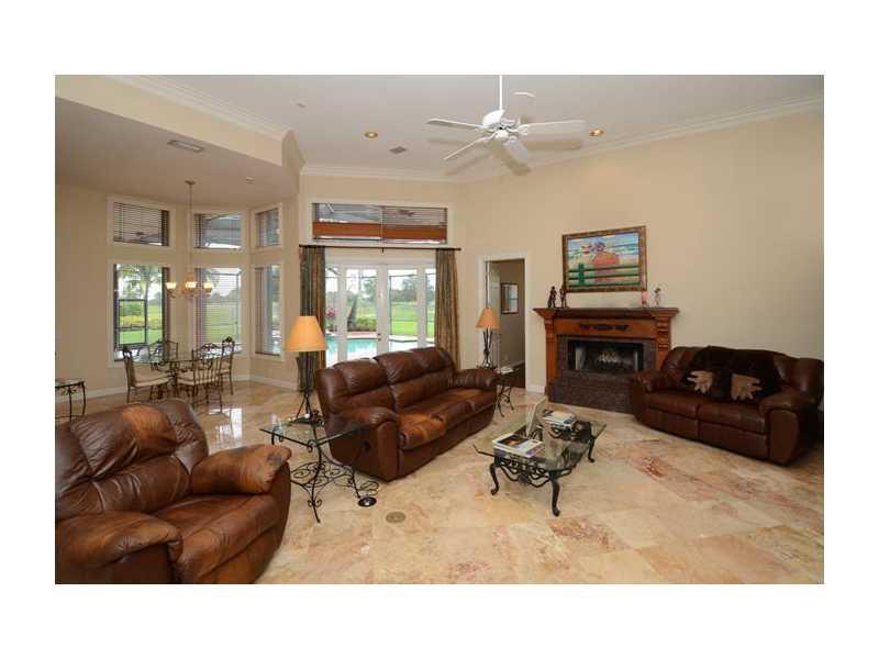 Direct,Panoramic Golf Course Views from over a half acre lot on a cul-de-sac. Fenced Yard. Beautiful Pool Home with Large Social Areas and 7 Secondary Rooms. Spacious rooms throughout.Marble through social areas with wood and carpet other. Wood burning fi replace.HUGH master closet. Three way split floorplan. ManCave can be converted to bedroom. Central Vac. Impact glass at the front and accordions all other. 3 car garage and an oversized drive for extra parking. Two 24 hr manned gates to enter WHCC.