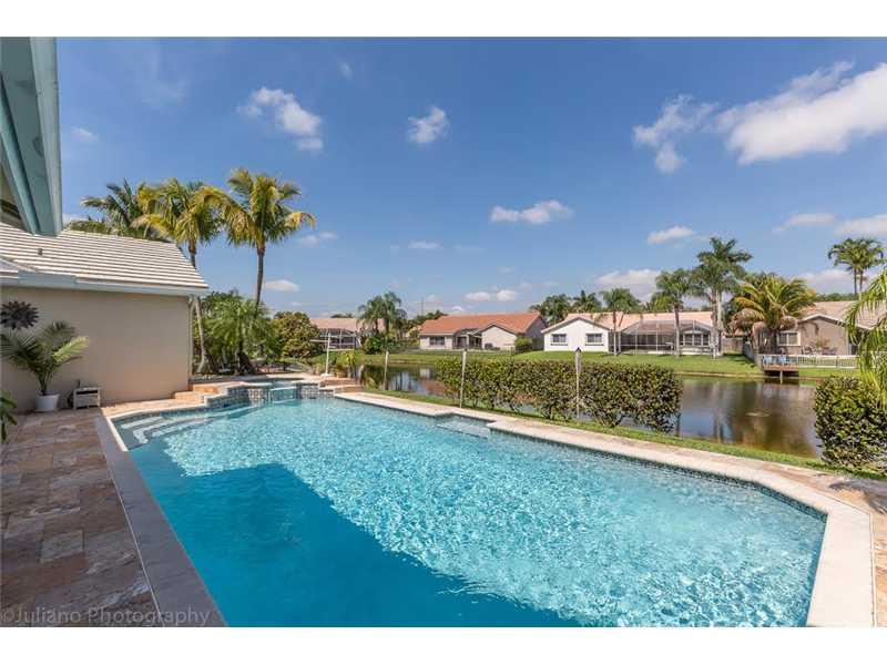 This custom 4BR+Den/2.5BA home has it all! Spectacular waterfront oversized lot on a peaceful cul-de-sac. Newer items include Tile Roof, Accordion Shutters-'06, Large eat-in kitchen with Maple kitchen cabinets, Corian countertops-'10, Large Heated diamond bright Pool and SPA with waterfall, Travertine marble patio, Hurricane rated garage door, updated 2-zone A/C-'12, Freshly painted, Recessed lighting, Enormous Master suite with huge walk-in closet, Large backyard, swing set included! Hurry won't last!