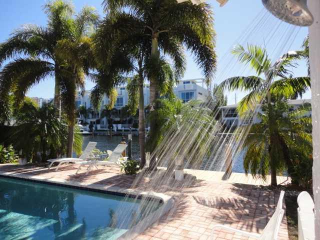 Boaters dream with immediate access to Hillsboro Inlet with no fixed bridges on a wide 140ft canal. Features include a spacious split floor plan, oversized master bedroom & bathroom with his/her sinks, Jacuzzi tub, walk-in closet, huge open kitchen, tall vaulted ceilings with custom lighting, natural light from two skylights, two car garage, 75ft of water frontage, dock, wet bar, outdoor shower, tropical landscaping & more. Enjoy the sunrise and sunsets by your pool or dock watching the boats go by.