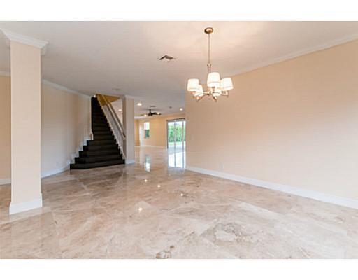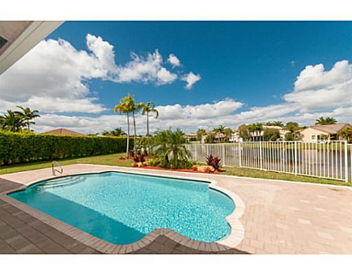 This beautiful home features new marble & wood floors, new kitchen cabinets w/ stainless-steel appliances, granite countertops. mosaic backsplash, dark-chocolate wood cabinets. All bathrooms updated w/ granite counters, water-saving toilets, new vanities. Baseboards & crown-molding. New water heater. Freshly painted. Outside features: pavers in front & backyard around pool. Pool redone w/ new motor. All new landscaping. Majestic mango & avocado trees. 2 car garage. Biggest lot around. Gated community.