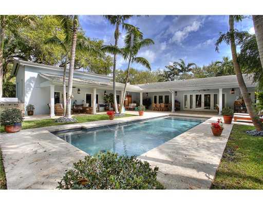 Simply perfect, stunning home renovated & expanded 04 by Mackle Construction. Crisp South Florida meets Bermuda style w/clean lines, magnificent millwork, wonderful art space, lots of glass & light. Fabulous formal living & dining rms, exquisite master su ite, magazine worthy family room & den. Enchanting backyard w/dreamy covered terraces, extensive coralina patio, heated pool, world class landscape & lighting. Add a brick driveway, impact glass, generator ready & gated community, and you have a "10".