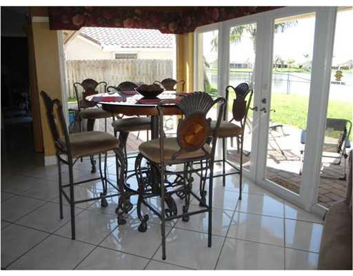 TRUE 5 BEDROOM HOME WITH 3 FULL BATHS; OPEN FLOOR PLAN WITH FRENCH DOORS IN BREAKFAST AREA, LIVING ROOM AND MASTER OVERLOOKING VIEW OF LAKE; TILE THROUGHOUT; ACCORDION SHUTTERS;SPACIOUS MASTER BEDROOM; FULLY FENCED YARD AND MUCH MORE!