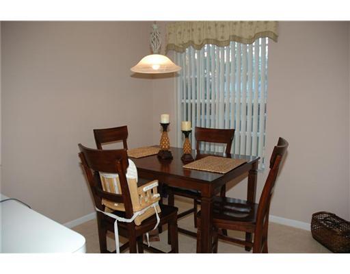 Pool property,accordion shutters second level w/regular shutters first level.Hexagon tiled entry w/marble inserts.Tiled floors main level,carpet 2nd level.Refaced kit w/many cabinets,SS appl.snackbar,sep eating area.DR seats 6/8.LR w/sliding drs to pool & patio.Fixtures & window treatments remain.Master w/walk-in closet,adjoining bath w/Roman tub,2 vanities.Pavered drwy & walkway.New a/c & water heater 2008.Raised panel drs throughout.Wonderful community amenities.