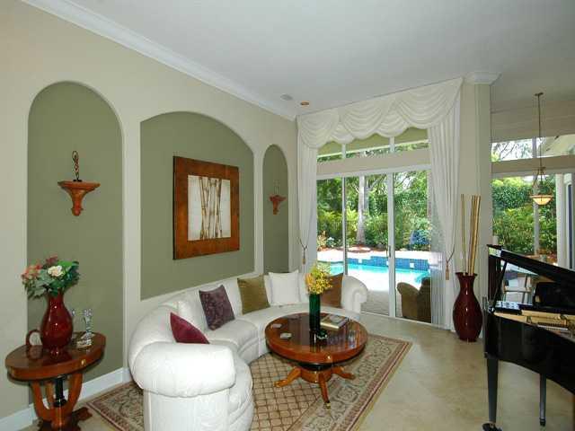 EXQUISITE FORMER MODEL HOME HAS RECENTLY BEEN UPDATED WITH NEW PORCELAIN MARBLE LOOK FLOORS WITH RECTIFIED EDGE, STAINLESS STEEL APPLIANCES & PAINTED INSIDE. CROWN MOULDINGS, PLANTATION SHUTTERS, FROM COURTYARD ENTRYWAY TO THE OUTSIDE PRIVATE BACK POOL/SP A AND PATIO AREA WITH LUSH TROPICAL LANDSCAPING THIS HOME WILL ENCHANT YOU, IMPECCABLY KEPT, READY TO MOVE IN. GREAT SCHOOLS.