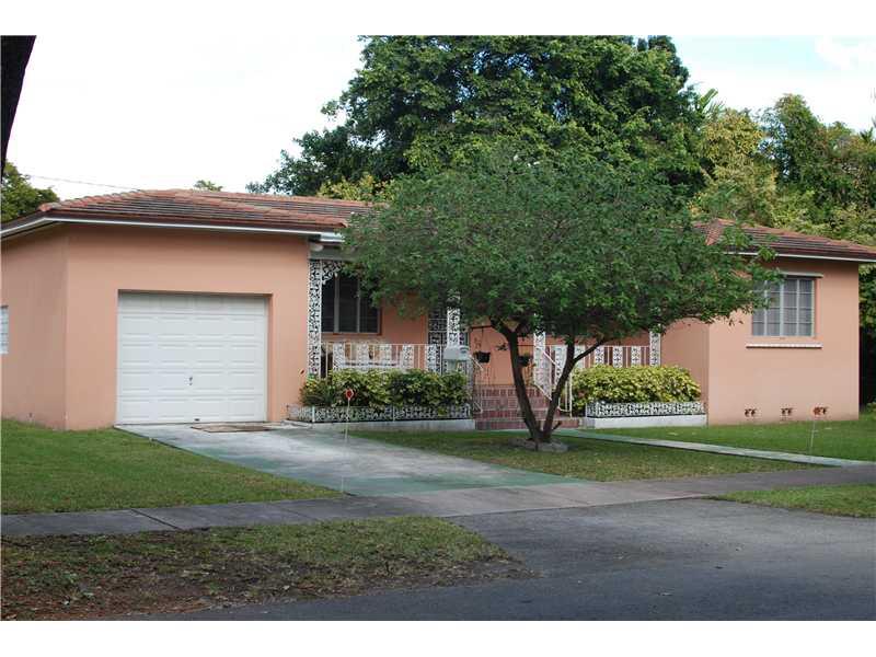 Adorable home in highly desired Coral Gables with TONS of potential. Quiet tree lined street. Beautiful 10,000 sqft lot with mature star fruit tree. Garage has a loft for lots of storage. Large utility room with washer/dryer, full cabinets and room for an additional refrigerator. Two formal dining room areas, an artificial fireplace in the living room and hardwood floors give this home a special charm to relax and entertain your friends. Plus, the home has a cozy Florida room for added living space.