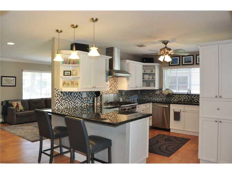 Gorgeous 3 bedroom 2 bathroom plus den pool home in the heart of Hollywood Lakes. Impact French doors to the beautiful pool area.Porcelain floors,living & Florida room,recessed lighting. Nice open kitchen, granite countertops, stainless steel appliances.L arge open floor plan. Laundry room w/ built-ins, hurricane shutters, alarm system, gas water heater, and gas connection for stove. Master bedroom w/ 2 large walk-in closets. Master bathroom has a large shower w/river rock flooring.