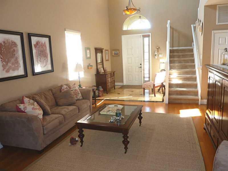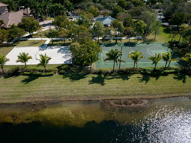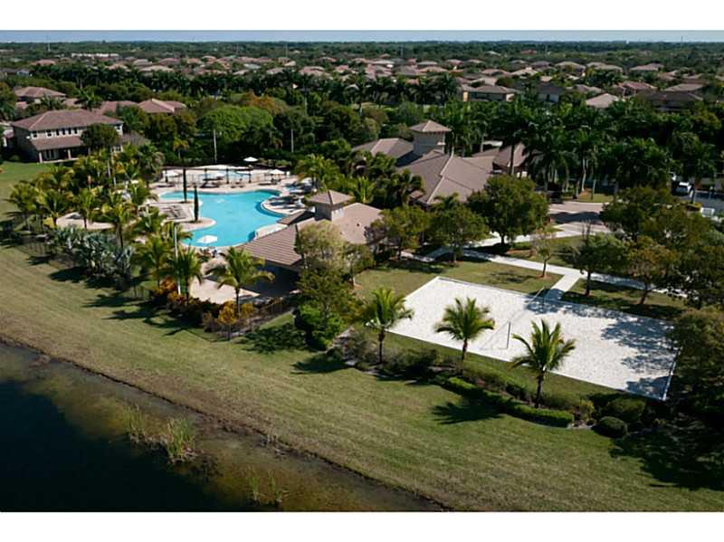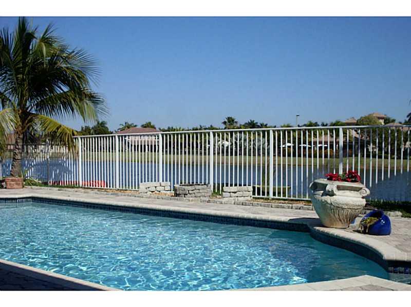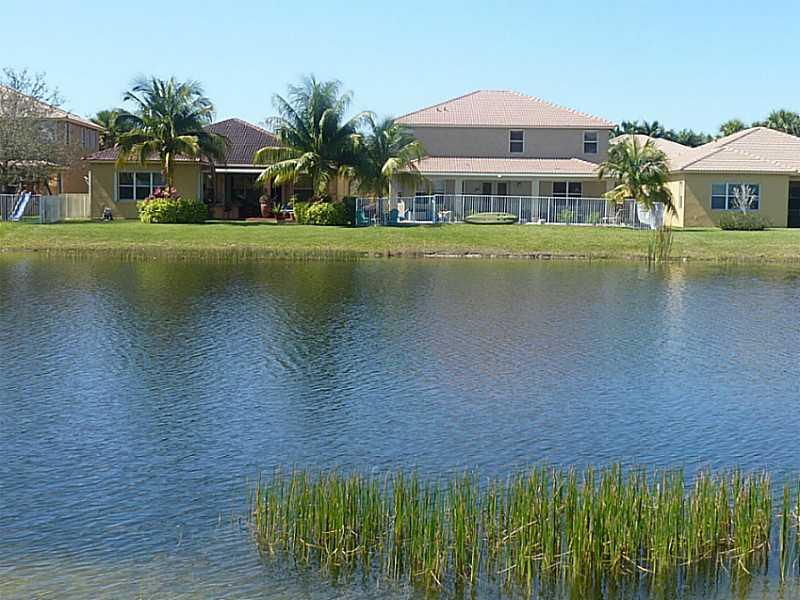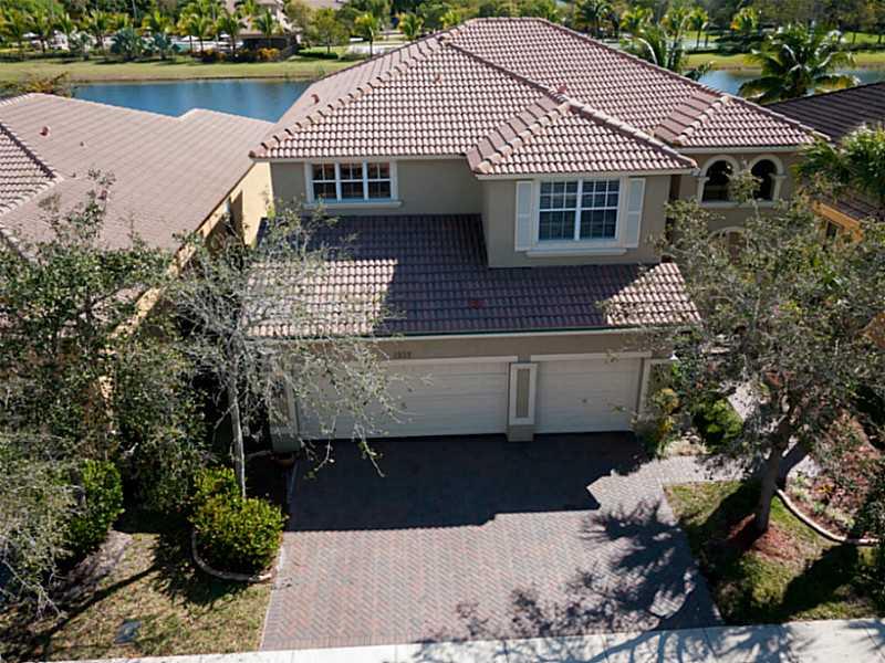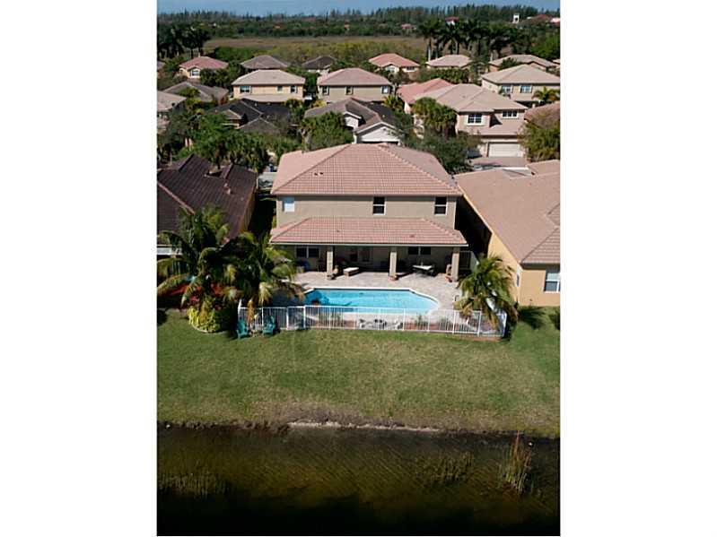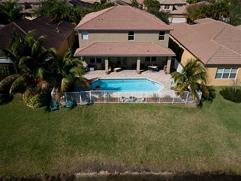Superb 5 BR, 4 bath, 3 car garage, pool, waterfront home. Waterviews fm most of home, enjoy covered patio, fenced pool, tropically landscaped yard. Gourmet eat-in kitchen with 42" wood cabinetry, corian counters. French doors, wood floors, 1 BR downstairs , master, 3 other BRs, huge loft upstairs. Big master suite incl walk-in California closets, upgraded master bath. Super location, walk to resort level community amenities, top Weston schools, close to I-75 for easy commutes in every direct.