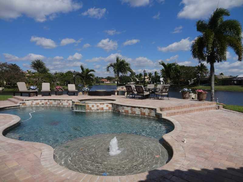Custom Built INLAW SUITE w/2.2 - FULL Kitchen w/bay window, Separate entrance -Which makes this one of a kind beauty 6/4 - 3 car garage. Breathtaking views of the pool/spa/lake from the glass enclosed florida room. Huge pavered patio is perfect for ente rtaining. UPDATED custom wood granite kitchen with french doors throughout. All baths are UPDATED This pie-shaped lot located on quiet cul-de-sac has beautiful landscaping . Barrel Tile Roof is only 6 years old. A+ schools and $280 HOA only ONCE a year!
