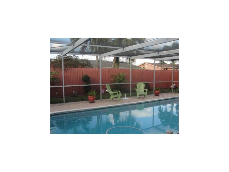 Great location - Suburban property 4 bedrooms and 2 bathrooms, double car garage, stamped concrete driveway, hurricane shutters. Granite kitchen w/SS appl. and eating area (island). Screened in 13 ft pool with tiled deck, granite outside counter top. Floo r plan has Master bedroom on one side of the house with the additional three rooms on the other side. Master bedroom (16' x 12') with remodeled bathroom and walk in closet. Additional 3 bedrooms tiled with closet space (avg 12' x 12').
