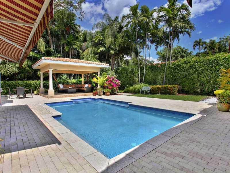 This pristine fully renovated 4,660 sq ft home is located on a sweeping corner lot in Coral Gables. The open floorplan with 5 bedrooms, 5 bathrooms provide a grandeur look and feel. Indoor bar, heated pool and large gazebo lends itself for entertaining. Gourmet kitchen has formal dining or eat-in option. Master suite includes spa bath and his and hers walk-in closets. Conveniently located within walking distance of family friendly Jaycee Park.
