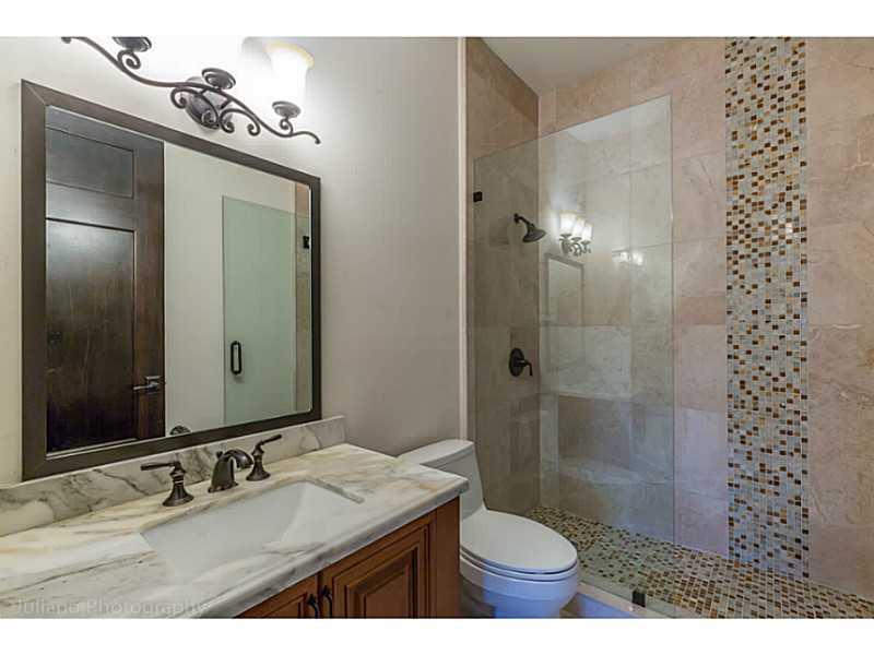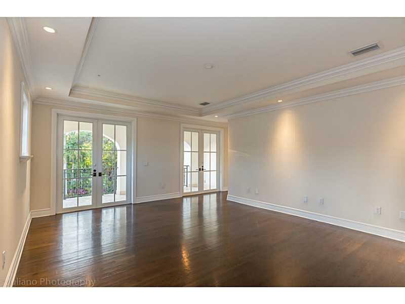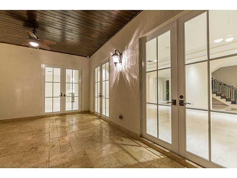 Rare Opportunity Brand New on triple+ lot on quiet Gables street, by Master Arch Eduardo Calil. All white bright transitional Med w/stone courtyard centered around grand Oak.Great flrplan w/living rm & kit/family open to large covered terrace,huge backyar d.3/3.5 dwnstrs & 3/3 up.Fab master w/2 masterfully builtout walkins,glamorous bath suite & large terrace. 6th room downstairs w/fireplace can be guest/den/office.High/coffered/wood clad ceilings,large impact w/doors, custom finishes,sec cameras,gas line.