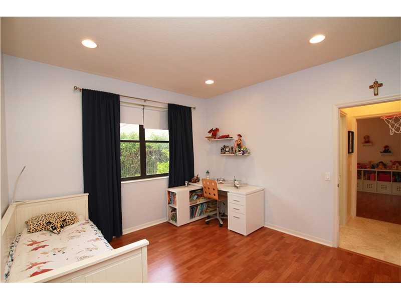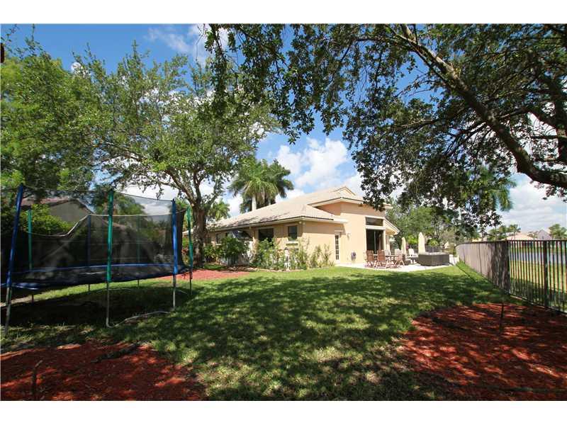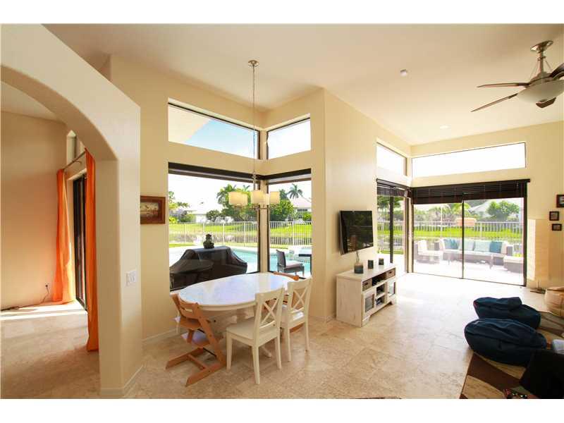 Gorgeous Home placed in a cul-de-sac with a circular driveway & glass front doors. Triple split bedroom floor plan. Beautiful CORAL FLOORS in the main living area, WOOD FLOORS in the master suite & one bedroom. Master suite has plantation shutters, tray c eiling & oversized closet w/built-ins including a dresser. Jacuzzi tub & large shower. Fenced Lot is 16772 sq ft w/155 ft. on water & pool w/ spa. Large kitchen with warm wood cabinetry, granite counter tops & stainless steel appliances. MUST SEE!