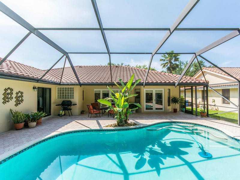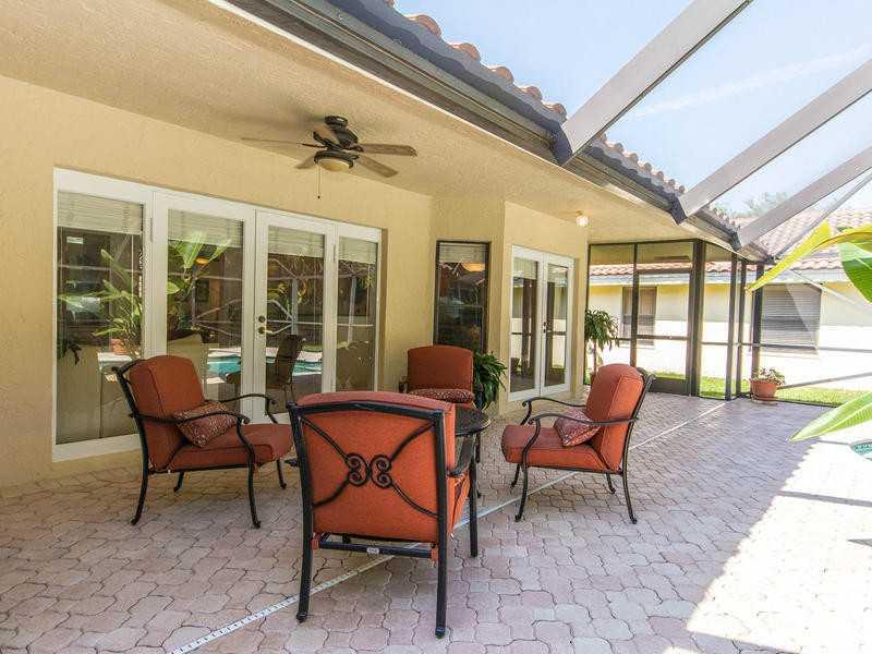 Welcome to your new home, meticulously maintained and upgraded over the years with Travertine marble floors,Custom built wall unit in family room, white wood blinds, French doors, Fluted casings with rosettes, Upgraded kitchen with stainless steel applian ces and granite counter tops in 2010 Custom tile in bathrooms with frameless shower doors. Barrel tile roof replaced in 2008 Free form pool with screened enclosure and brick pavers New hurricane rated garage door replaced in 2014. A WINNER.