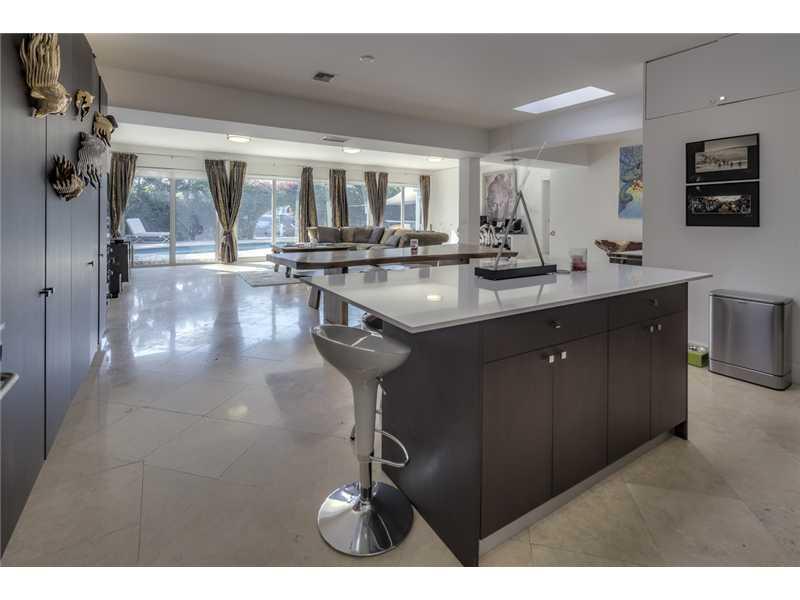 Home was completely remodeled in 2013 with new roof, hurricane windows, bathrooms, kitchen, floors, and closets. Total parking inside and outside 12 cars. Roof terrace seating for 30 people, summr kitchen with barbecue, fridge, ice-maker, sink. Waterfront property, has a new seawall & new dock. Site currently a large 60 feet yacht and 2 separate slips for 2 jets-skis. Pool w/covered seating area, laundry room, & storage. Original home was built in 1957, but extended and architecturally changed in 2013.
