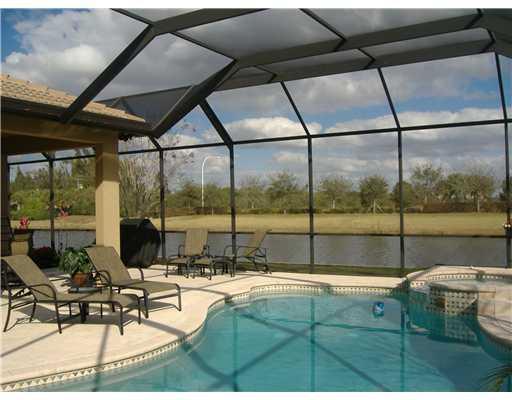 "A" rated schools.IMMACULATE waterfront home features: gourmet kitchen w/ 42" custom wood cabinets, island & corian counters; resort-like pool area: heated pool & raised spa,oversized covered deck, wired for TV & speakers & meditation garden; custom built -ins; stone-like tile floors; plantation shutters; luxury master bath w/ glass shower, glass block & custom tile; triple split; custom blinds & window treatments. Private backyard. Well located with easy access to highways and shopping facilities.