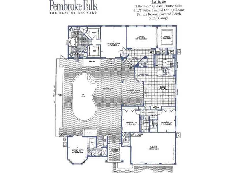 Spectacular & Sought After Lalique Courtyard Model Pool Home w/Guest House located in Exclusive Crystal Harbour at Pembroke Falls. Features a Spacious "L" Shaped Floor Plan that Wraps Around a Private Courtyard & Refreshing Free Form Pool. Open Kitchen w/ Double Ovens & Walk-in Pantry. Expansive Master Suite w/Sitting Area & Jacuzzi Tub. Guest House Makes a Wonderful In-laws Quarters or Home Office. Accordion Shutters. Natural Gas Generator. Extended Covered Patio. The Perfect Home for Entertaining!