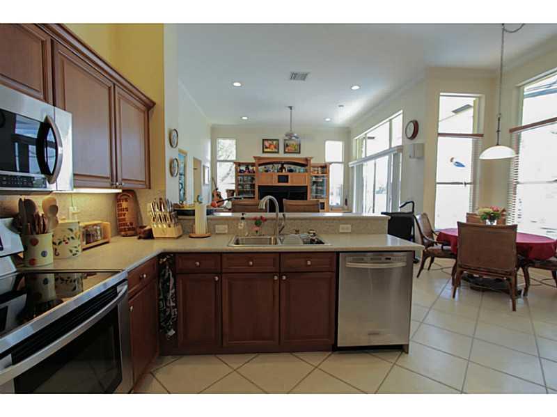 GORGEOUS 4BED / 3BATH / POOL / LAKE, NEWLY PAINTED HOME. Large floor tile in diagonal pattern. Ceiling spot lights to illuminate paintings niches. Siluete blinds in sliding door overlooking pool+lake. Details: tray ceiling, niches, columns, arch windows. K: Solid cherry wood cabinets, SS appliances. Corean countertops and back splash. Pantry with pull out drawers. Eat in area. FR: window shades, Acccordion Shutters, sliding door to pool area. Wired for theater sound. See Attachments for EXTRAS!!!