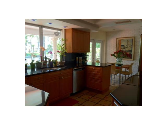 Waterfront, 4BR/3Bth home with pool on private street beautifully remodeled in 2006 is impeccably maintained. Spacious & bright with enclosed atrium streaming in light through open living room, adjacent dining room, separate den. Impressive kitchen has wo od cabinetry, GE appliances & overlooks large backyard with fountain, heated salt water pool. Office can be 4th BR. Separate laundry room, storage room, cedar closet. A/C 4 years. 2 car garage. Aventura/Waterways K-8 school.