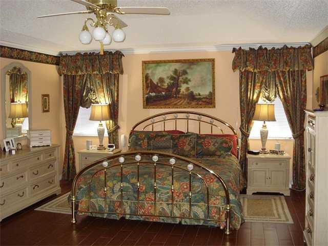 LUXURY WATERFRONT HOME. Unique custom 4 Bed-3 Bath,Loft home plus den on 200 acre lake. Has wood burning fireplace,custom kitchen cabinetry w/interior glass shelving, upgraded granite counter tops. Porcelain wood floor upstairs & ceramic downstairs. Woo d wall molding treatments throughout. Transfer box for emergency generator & water purification system. New: two high efficiency air conditioning units, and is having exterior painted. Accordion hurricane shutters throughout including garage.