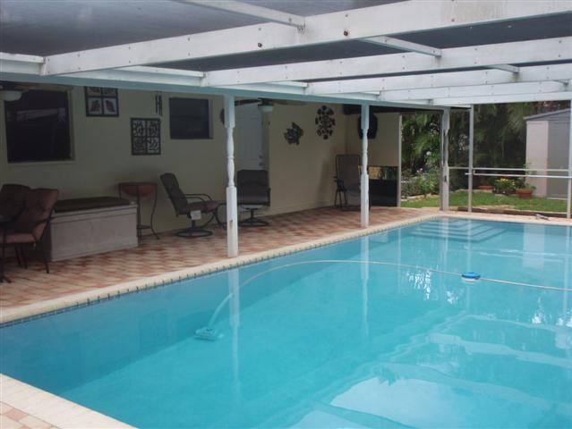 Lovely 3 beroom 2 bath, updated kitchen and bath, tiled, large screened pool area, laundry room, garage partially enclosed for room/office area, can be put back to garage.