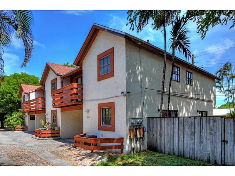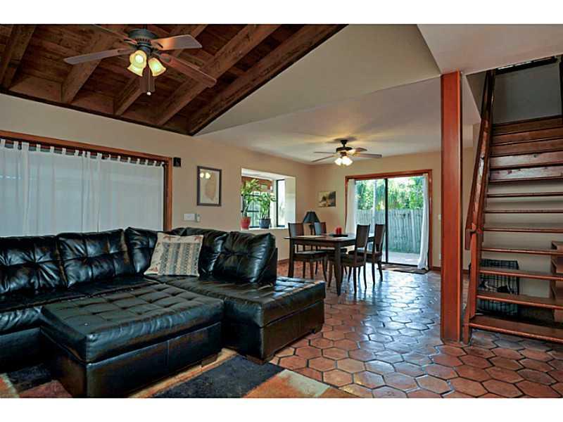 ONLY 2 MILES FROM THE BEACH. Spacious 2 bedroom 1.5 bath corner townhouse located close to Young Circle restaurants and shops with quick access to 95 for the daily commute. Great for entertaining, living area boasts high vaulted ceiling with beautiful na tural wood beams and Mexican tile. Dining area flows out to expansive private fenced patio. Bedrooms are large with walk-in closet in master and wall-to-wall closet in guest room. Bonus room off living area is perfect for home office.