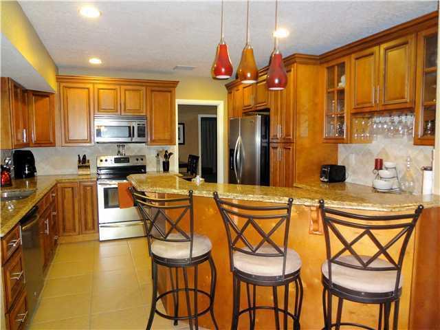 WOW! THIS GEM WILL NOT LAST! IT HAS A TOTALLY UPDATED KITCHEN WITH GRANITE COUNTER TOPS, STAINLESS STEEL APPLIANCES AND NEW KITCHEN CABINETS. THE MASTER BATHROOM HAS AN OVERSIZED SHOWER WITH SLATE TILE AND GRANITE VANITIES WITH UPDATED FAUCETS AND LIGH TING. THE SECOND BATHROOM IS ALSO UPDATED WITH NEW COUNTER TOPS AND FIXTUERS. THE ROOF IS A NEWER ROOF FROM 2007, POOL HAS A NEW DIAMOND BRITE AND POOL DECK FROM 2010, AND THE A/C WAS REPLACED IN 2009. RUN DON'T WALK AS THIS GEM WILL NOT LAST!