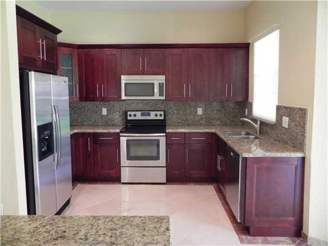 Fabulous 4/4 1/2.*New Kitchen w/wood cabinets,granite counter tops,& new SS appliances* . All bedrooms have a full bath. Marble floors just refinished.Over sized lot +very large wrap around patio.Great for entertaining. Plenty of room for a pool. This lot is twice the size of most other properties in the community.Split bedroom plan separates master suite for privacy. Great family room opens to the kitchen. Accordion hurricane shutters on all windows. Freshly painted exterior. *EZ to show* On lock box.