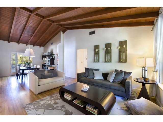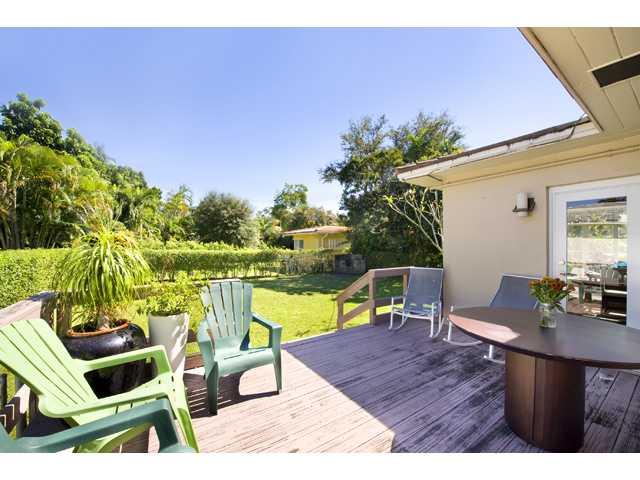 Coral Gables charming home! Enter into a spacious 2BD/2BA w/den (converted garage) vaulted tongue & groove ceilings. Enjoy ample living space from all areas of this home w/cozy hard wd flrs. Relish the outdr breeze from this bright Florida rm, great for a hm office or children's play area. Explore your culinary skills from this spacious eat-in kit w/updated cabinet's including S/S appliances. Home has updated glass drs leading to a wd deck, fantastic space for entertaining, with room for a pool.