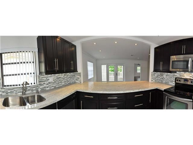 Upscale renovations. Updated 3 bed/ 2 bath home with 2 car garage in the prime Hollywood Lakes area. Engineered wood floors. Spectacular updated kitchen with stainless steel appliances, solid wood cabinets, white cashmere granite counter tops, and glass t ile backsplash. Beautiful marble flooring. Crown molding in living room and family room. Recessed lights in the entire home. Master bedroom features large walk in closet, large bathroom with shower and jacuzzi tub. New roof.