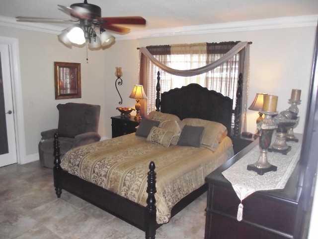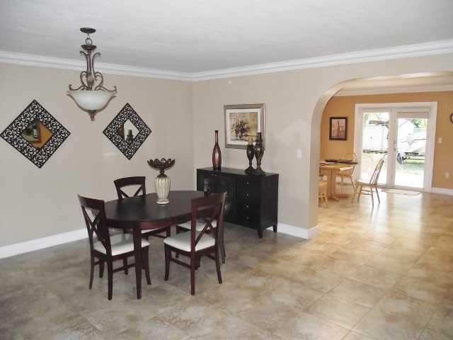 Splendid remodeled 4bed/3bath + Den/Office provides ample open living spaces.Updated w/quality finishes, this home features wood kitchen cabinets w/granite counters, impact windows,remodeled baths,tile floors, crown moldings,new A/C, freshly painted & rea dy to move in. Large lot great for boat storage & more. Covered terrace ideal for entertaining. Garage converted to 4th room + bonus wet bar area with access to kitchen/breakfast area.Large fenced patio has room for pool.Normal sale and easy to show.