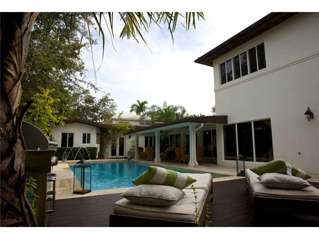 5Bd/5Ba+Den/Off -4,200 sf; Renovated w/addition in 2011. 2nd Master Bedrm Downstairs/1 Master Suite Upstairs w/ Full Kitchenette. Impact Windows/Doors, New Roof, Saturnia & Wood Floors,Energy Efficient - Updated Plumbing & Electrical with Tankless Water H eaters. Professionally Landscaped Grounds featuring Automatic Sprinkler System throughout. New Heated Pool w/ Relaxing Water Feature plus Private Covered Terrace. Indoor/Outdoor Surround Sound for Entertainment. Internet Accessible Security Cameras.