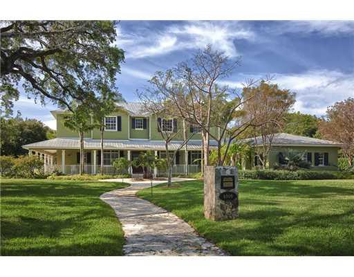 Relaxed yet sophisticated Key West inspired home. Over an acre of tropical paradise designed by Bell + Aqüí. Soaring ceilings & well-designed floor plan perfect for real South Florida living. Marble & cherry floors, lg living spaces, gourmet Viking kitche n & spacious master + fireplace & private balcony. Elan sound, lighting & security system. Built in salt water fish tank in family room. Wraparound keystone porch & patio boasts summer kitchen/bar. Resort style pool & Jacuzzi. Home Generator.