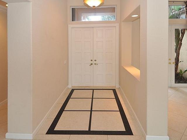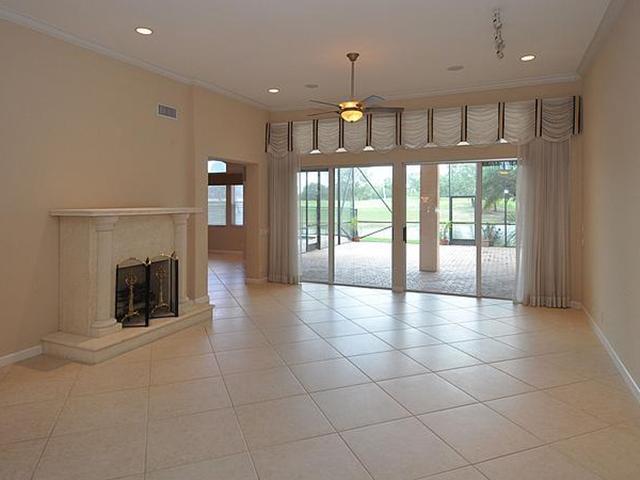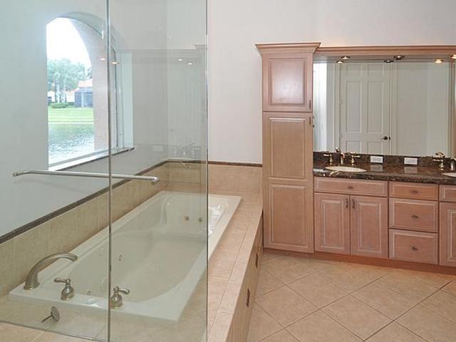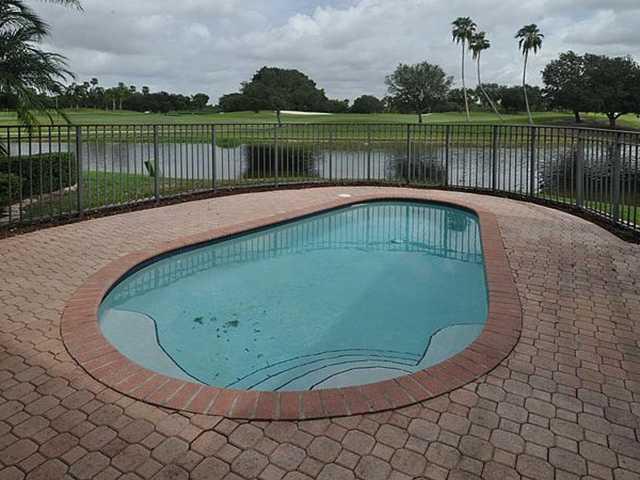 3BR/2.5BA pool home with incredible lake to golf views, situated at the end of cul-de-sac. Highly upgraded throughout. Kitchen offers 42" wood cabinets, granite counters, stainless steel appliance, under-cabinet lighting, pull-out drawers in pantry, lazy Susan and eat-in breakfast area. Upgraded Master Bathroom with wood cabinetry, granite counters and spa tub. Huge walk-in MBR closet. Screened and covered patio. Fully maintained community includes lawn and shrubbery maintenance.
