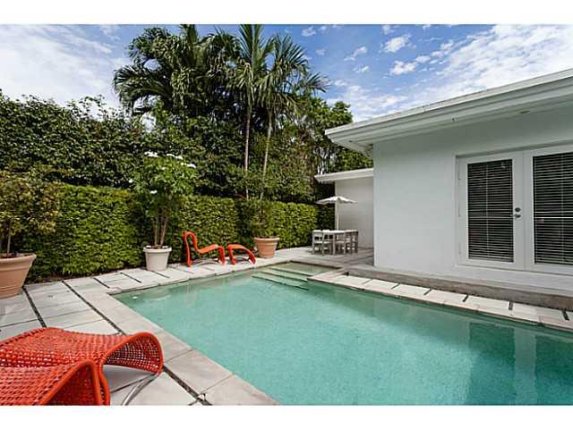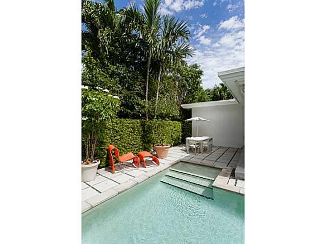 Faithfully restored 1950s contemporary home with vaulted ceilings, skylights, terrazzo flooring, custom recessed lighting and surround sound system. Perfect for entertaining with an open floor plan, large outdoor terraces, french doors with Delano-style pool. Gourmet kitchen featuring Thermidor, DCS and Sub-Zero appliances. Tropical landscaping and lush fruit trees create the perfect outdoor oasis.