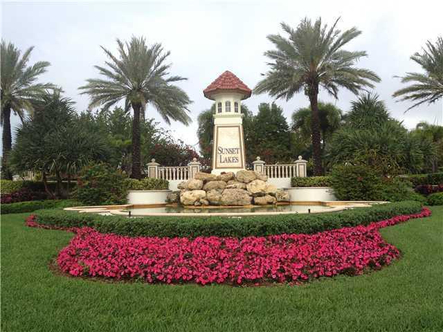 ONE STORY BEAUTIFUL HOME IN SUNSET LAKES RESORT STYLE GATED COMMUNITY, 4 BEDROOMS, 3 FULL BATHS, FAMILY ROOM, TILE THROUGH OUT, OPEN LAYOUT KITCHEN WITH UPGRADED GRANITE COUNTERTOPS,HIGH VAULTED CEILINGS, OVER SIZED COVERED PATIO WITH HEATED POOL AND WATE R VIEW, PERFECT FOR ENTERTAINING, ACCORDION SHUTTERS, A-RATED SCHOOL AREA, NOT A SHORT SALE OR FORECLOSURE, WILL NOT LAST!!! EASY TO SHOW!