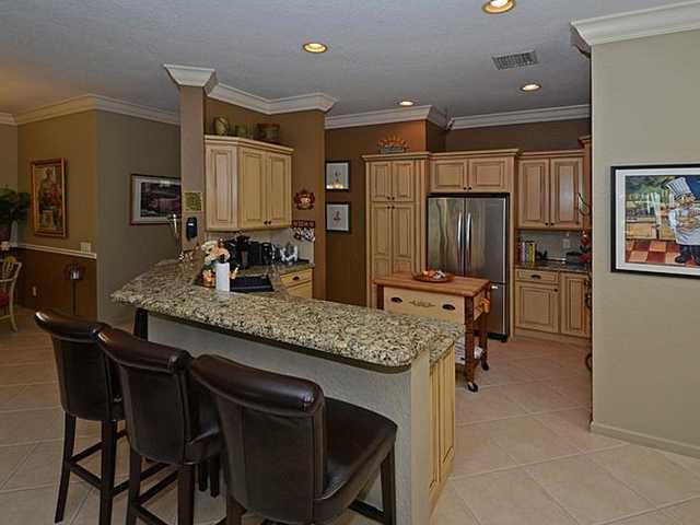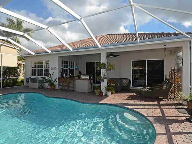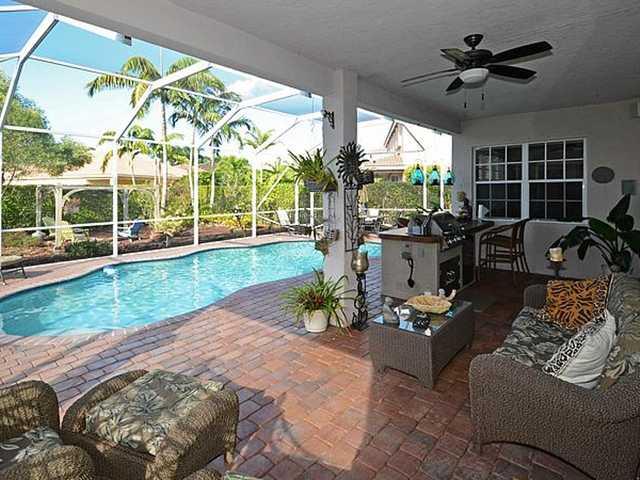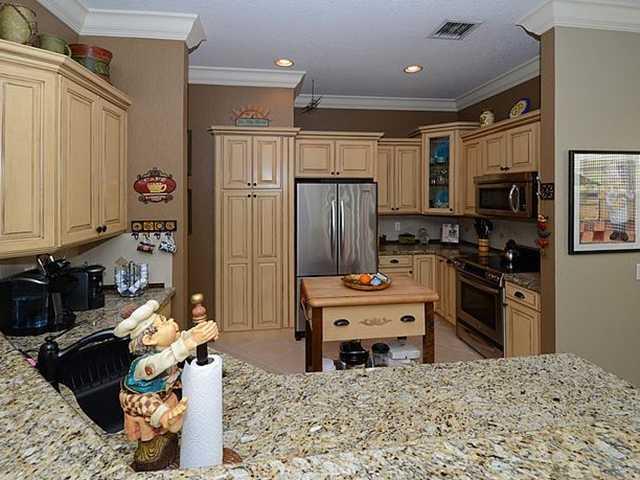 Immaculate Alamanda model with 3BR/2BA plus den/French doors. Den can easily be converted to a 4th bedroom. 18" tile on the diagonal, real wood floors in 2BR & Den. Crown molding throughout. 42" Thomasville wood kitchen cabinets, under-cabinet lighting, K itchenAid S/S appliances, granite counters, pull-out pantry drawers, lazy Susan. Screened patio, pool, summer kitchen with grill & refrigerator. Brick paver extended front porch, driveway and patio. Laundry Room with cabinetry and sink.