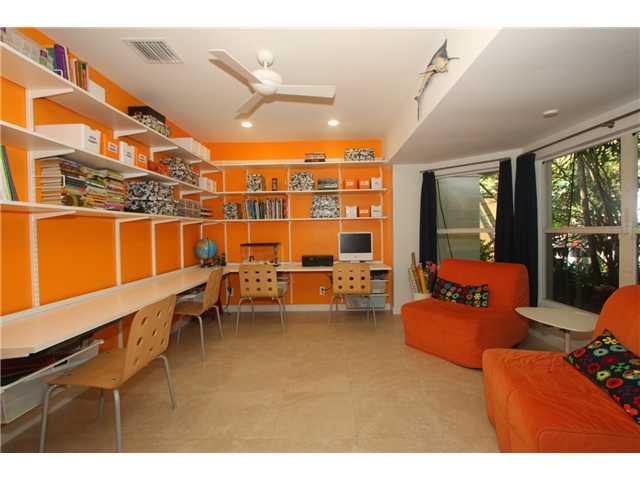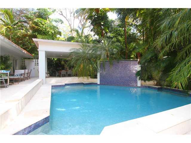 Distinctive mid-century masterpiece set on a walled & gated lushly landscaped double lot in prestigious South Coconut Grove.The home has been totally renovated w/attention to every detail and features a fireplace, porcelain floors, master suite w/vaulted ceilings, office & sitting area,state-of-the art custom kitchen, impact glass & built-ins throughout.5BR/4.5BA in main house w/detached 1BR/1BA guest bungalow. Outdoor covered terrace overlooks heated pool w/waterfall perfect for year-round entertaining.